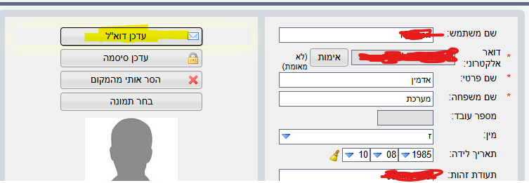 - במידה ואתה מנהל שמנסה לעדכן את כתובת המייל של עובד אחר, חשוב לדעת: