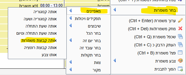 אפשרות נוספות להשתמש באפשרות "בחר" בתפריט. כך ניתן לבחור משמרות בעלות אותם מאפיינים.