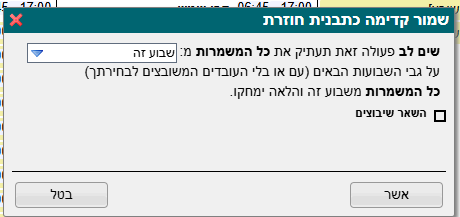 בחלון שיפתח אפשר לבחור אם לשמור את השבוע עם או בלי שיבוצים ולאשר.
