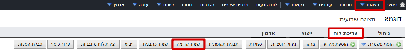 יש לשים לב שניתן לבצע פעולה זו רק בתצוגה שבועית לכן אם נמצאים במצב/סידור חודשי יש לעבור דרך תצוגות בתפריט לתצוגה שבועית.